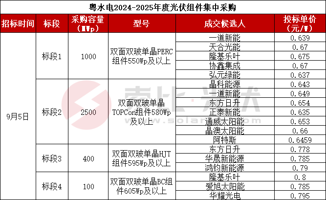近日,2024-2025年度光伏组件集中采购中标结果公告。